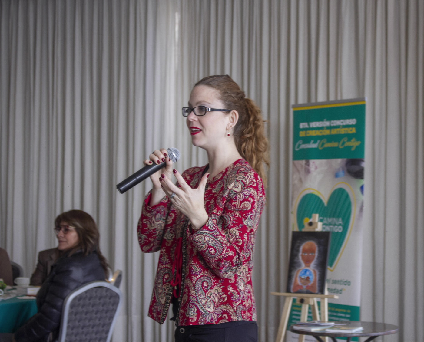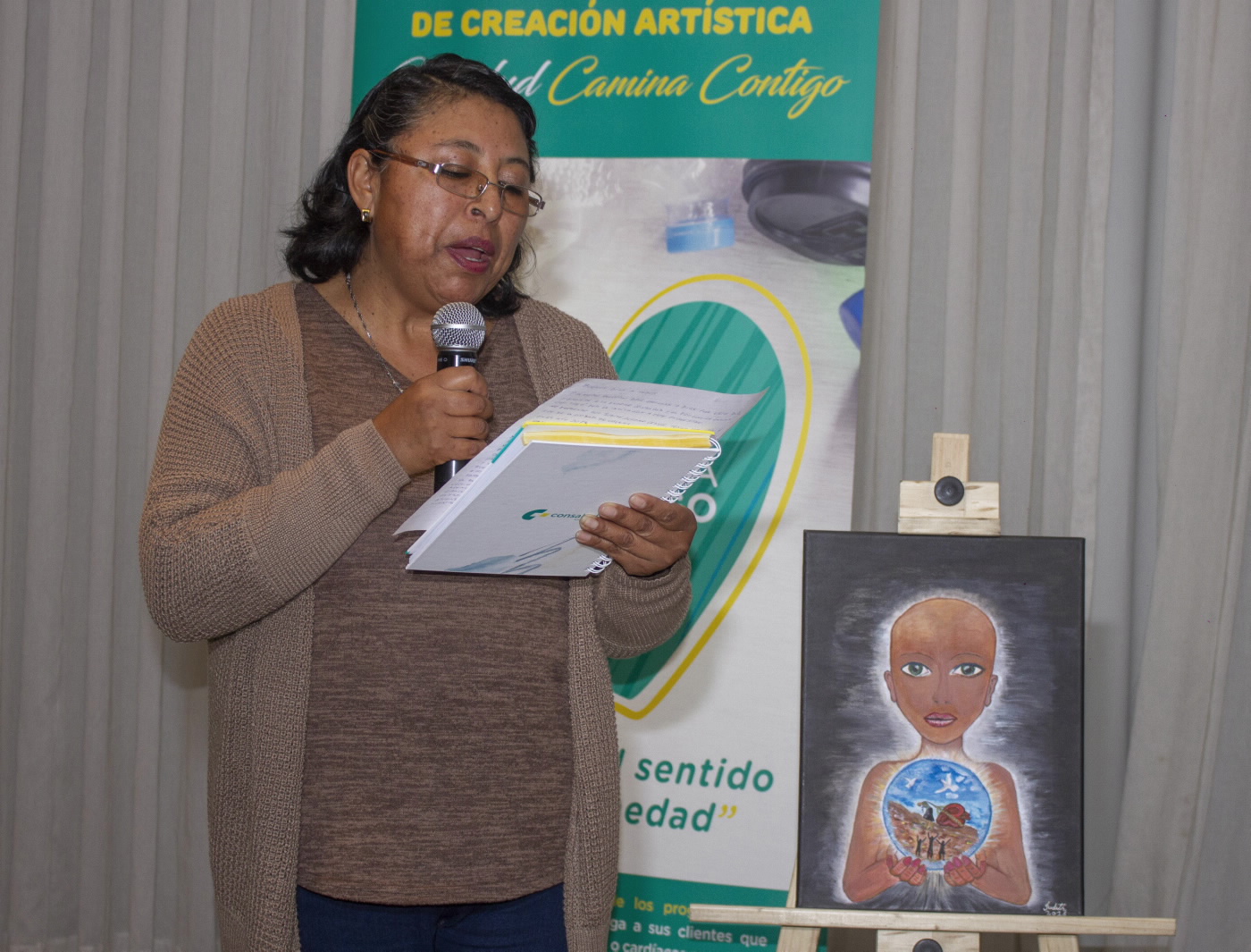 Judith Alfaro, es parte del Programa Consalud Camina Contigo desde el año 2013 y viajó desde Calama para dar a conocer su testimonio a todos los asistentes. “Me siento orgullosa de ser parte de este programa de acompañamiento. Es muy gratificante poder comunicar a los demás lo que verdaderamente sentimos los pacientes y para mi fue muy significativo poder reflejar mis sentimientos a través del arte”, precisó.