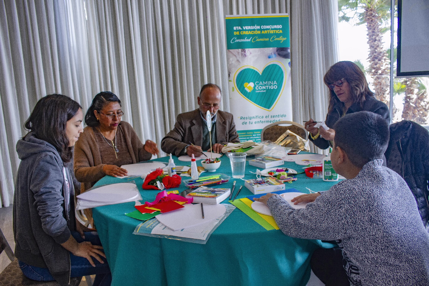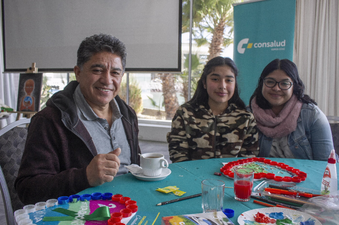 La actividad estuvo dirigida por la arteterapeuta Claudia Yáñez y la psicooncóloga Constanza Zúñiga, donde más de 30 pacientes oncológicos y cardíacos del programa Consalud Camina Contigo compartieron experiencias y reflexionaron en una jornada llena de emociones. Los clientes de consalud llegaron hasta el Hotel Panamericana Antofagasta, para crear corazones de material reciclado con el objetivo de resignificar el proceso de salud que están viviendo.