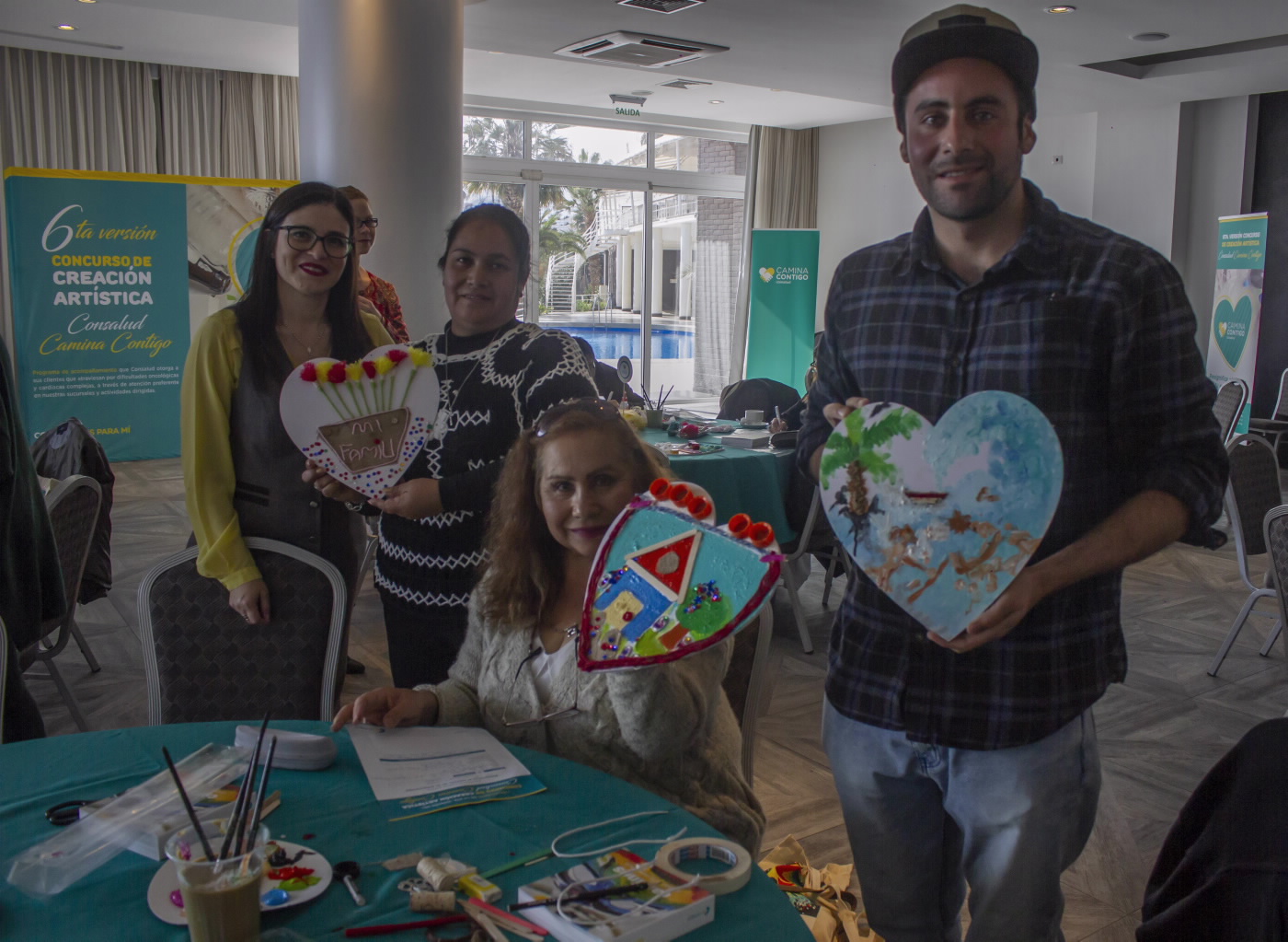 Combinando arte y psicología, beneficiarios del Programa de acompañamiento Consalud Camina Contigo de Antofagasta y Calama, resignificaron su enfermedad en un encuentro artístico, para pacientes oncológicos y cardiacos, donde compartieron experiencias del proceso de recuperación que han vivido y las plasmaron en corazones con material reciclado.
